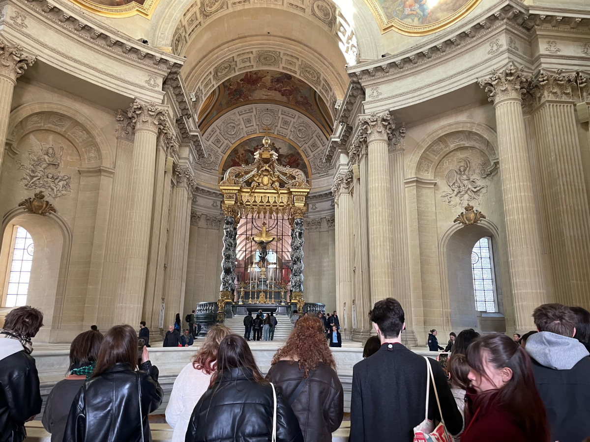 Pokračovali sme prechádzkou cez Tuilerijské záhrady, Place de la Concorde a most Pont Alexandre, ktorý nás doviedol až k slávnej Invalidovni. Navštívili sme ju a neobišli sme ani hrobku Napoleona Bonaparta, ktorá sa nachádza v Dóme Invalidovne. Ďalej sme sa vydali smerom k ulici Champs-Élysées, cestou sme sa ešte stihli zastaviť v múzeu Petit Palais a po prehliadke sme pokračovali k Víťaznému oblúku. Kým sme k nemu dorazili, zotmelo sa, ale náš zážitok o to silnejšie obohatilo krásne nočné nasvietenie tejto pamiatky. Od Víťazného oblúka sme sa rozhodli vrátiť k Eiffelovej veži, na ktorej sa vždy o celej hodine rozblikocú svetielka, a po tomto zážitku sme sa už nezmohli na nič iné ako vrátiť sa na hotel a poriadne sa vyspať pred ďalším dňom.