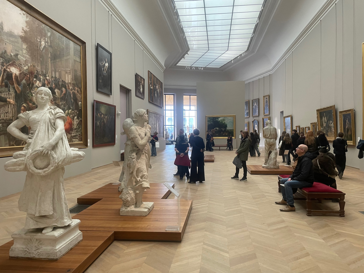 Na druhý deň sme sa po výborných francúzskych hotelových raňajkách (croissanty, bagety a veľa syra brie) vybrali do slávneho Musée D’Orsay. Študentky a študenti sa tu na vlastné oči stretli s dielami, o ktorých sa učia na dejinách výtvarného umenia: bol tu autoportrét Vincenta van Gogha a ďalšie jeho hypnotizujúce maľby, Monetove Raňajky v tráve, veľkoformátové maľby kabaretov od Toulouse-Lautreca, baletky Edgara Degasa či slávny Courbetov Ateliér a Pohreb v Ornanse, ktorý bol práve napnutý na reštaurátorskom ráme. Po vyše dvaapolhodinovej prehliadke sme sa nasýtení umením nasýtili aj dobrým obedom.