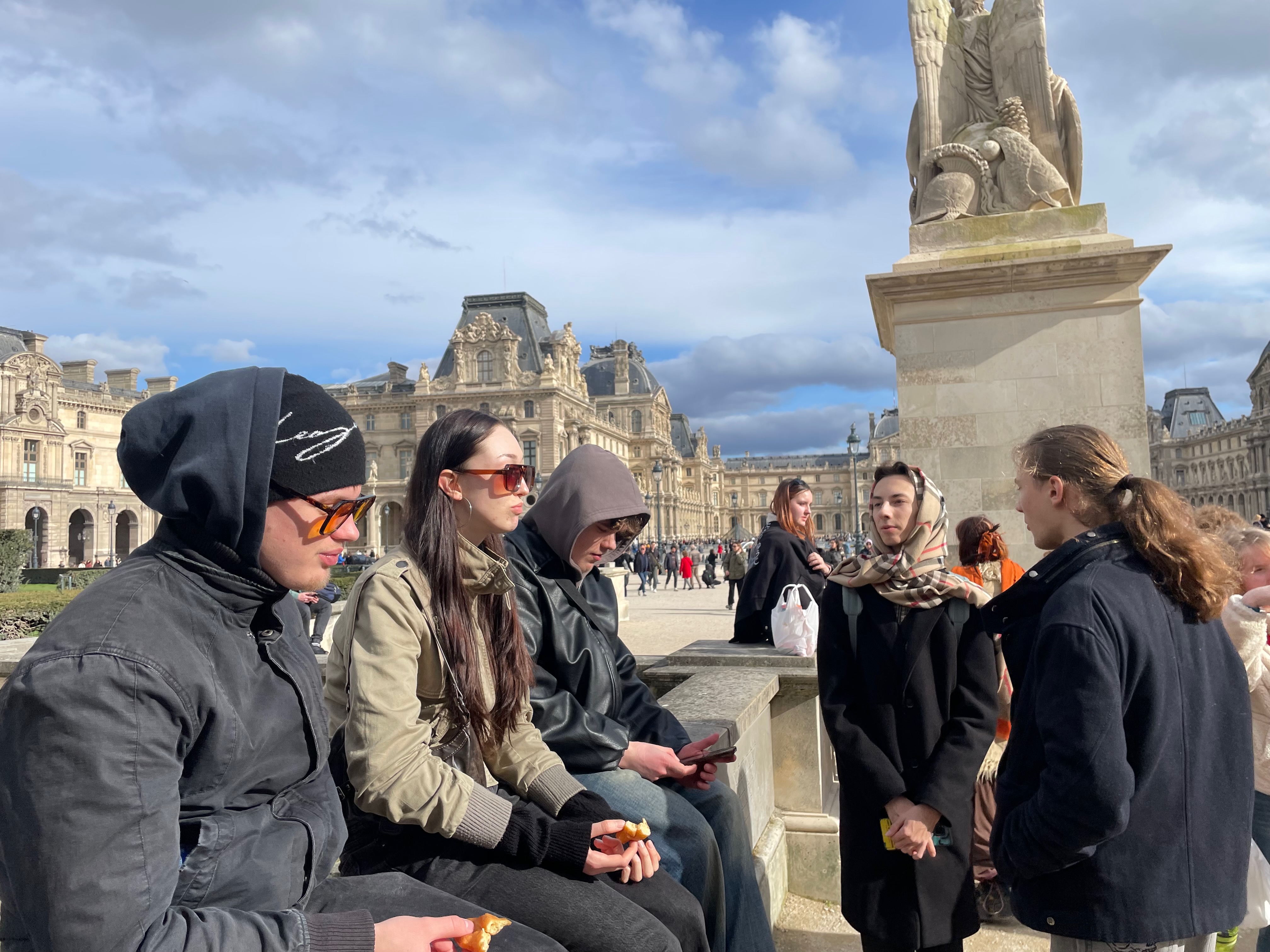 V nedeľu nás čakal Louvre. Strávili sme v ňom takmer štyri hodiny a keď sme už nevládali, posadili sme si na slniečko do záhrady des Tuileries. Po bohatej a výživnej prehliadke historického umenia sme navštívili umelecký ateliér 59 Rivoli, ktorý slúži ako otvorený priestor pre súčasné umenie. Študentky a študenti sa tu stretli s najčerstvejšími kresbami, maľbami, sochami, inštaláciami aj so
