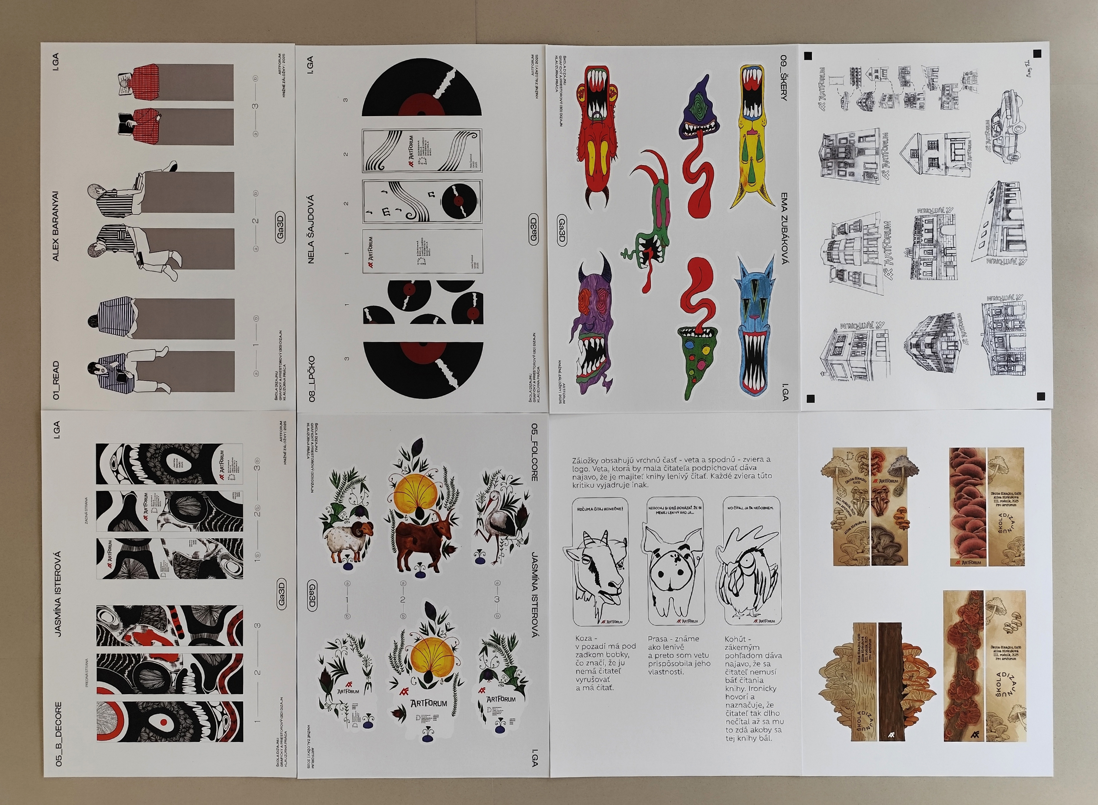 Pre kníhkupectvo a vydavateľstvo Artforum navrhli a v našom technologickom centre vyrobili študentky a študenti Grafického a priestorového dizajnu pod vedením pedagogičky Ľudmily Miklušičákovej série originálnych záložiek vrátane obalového dizajnu, ktoré sú distribuované v sieti Artforum.
