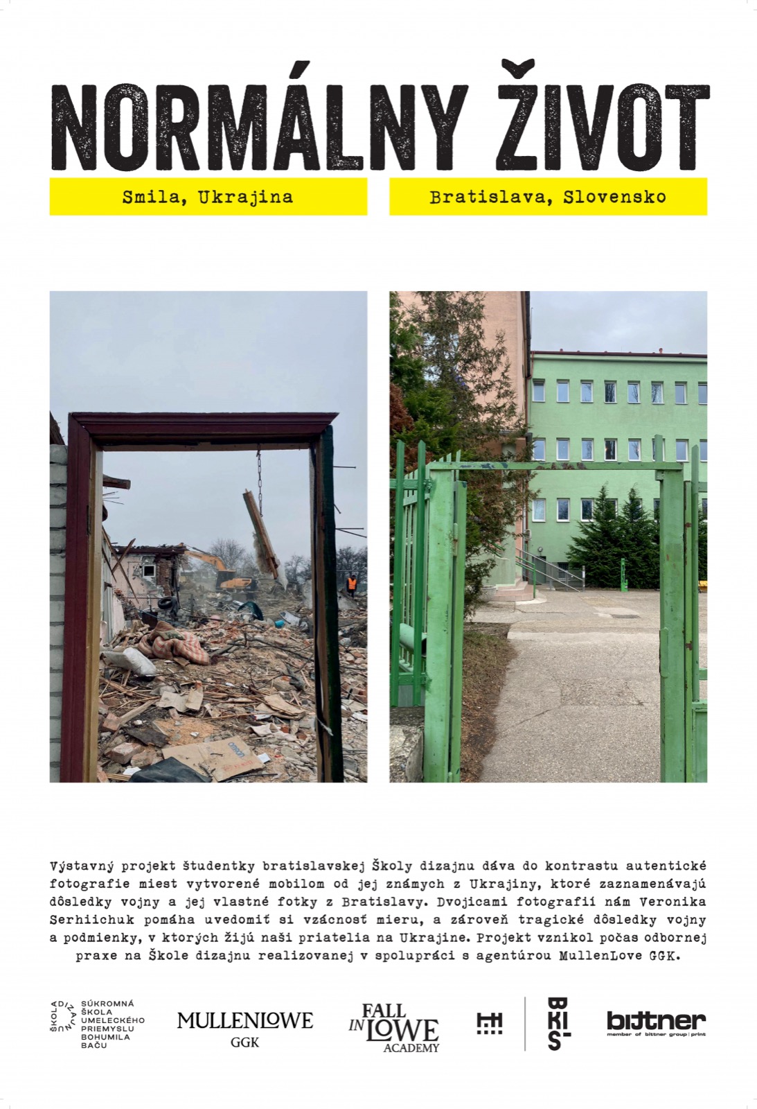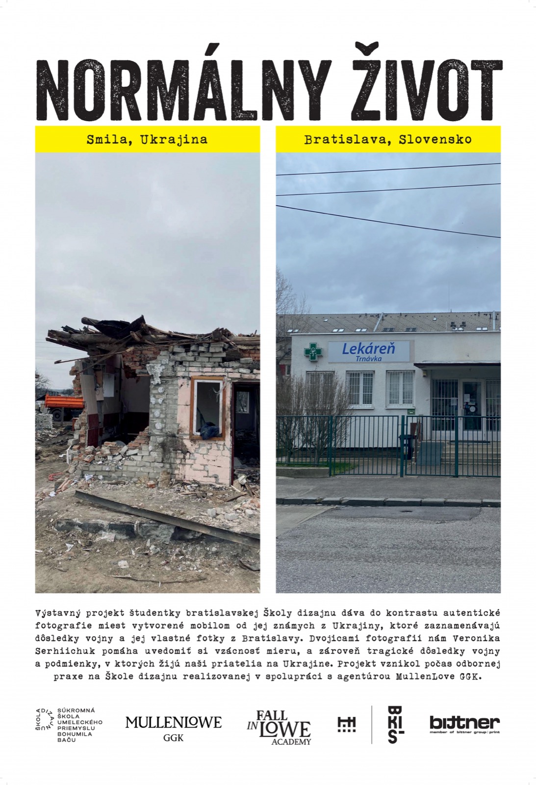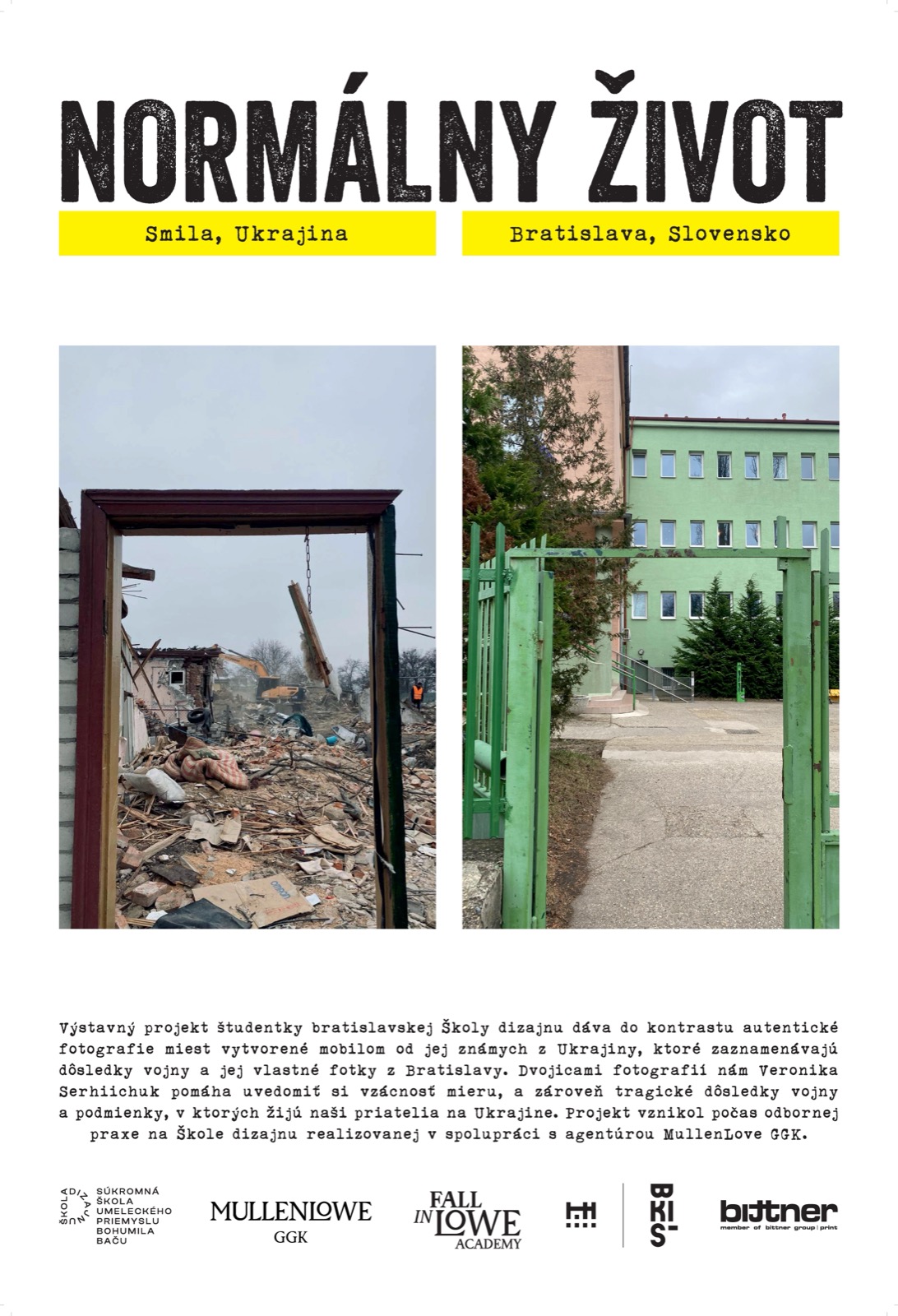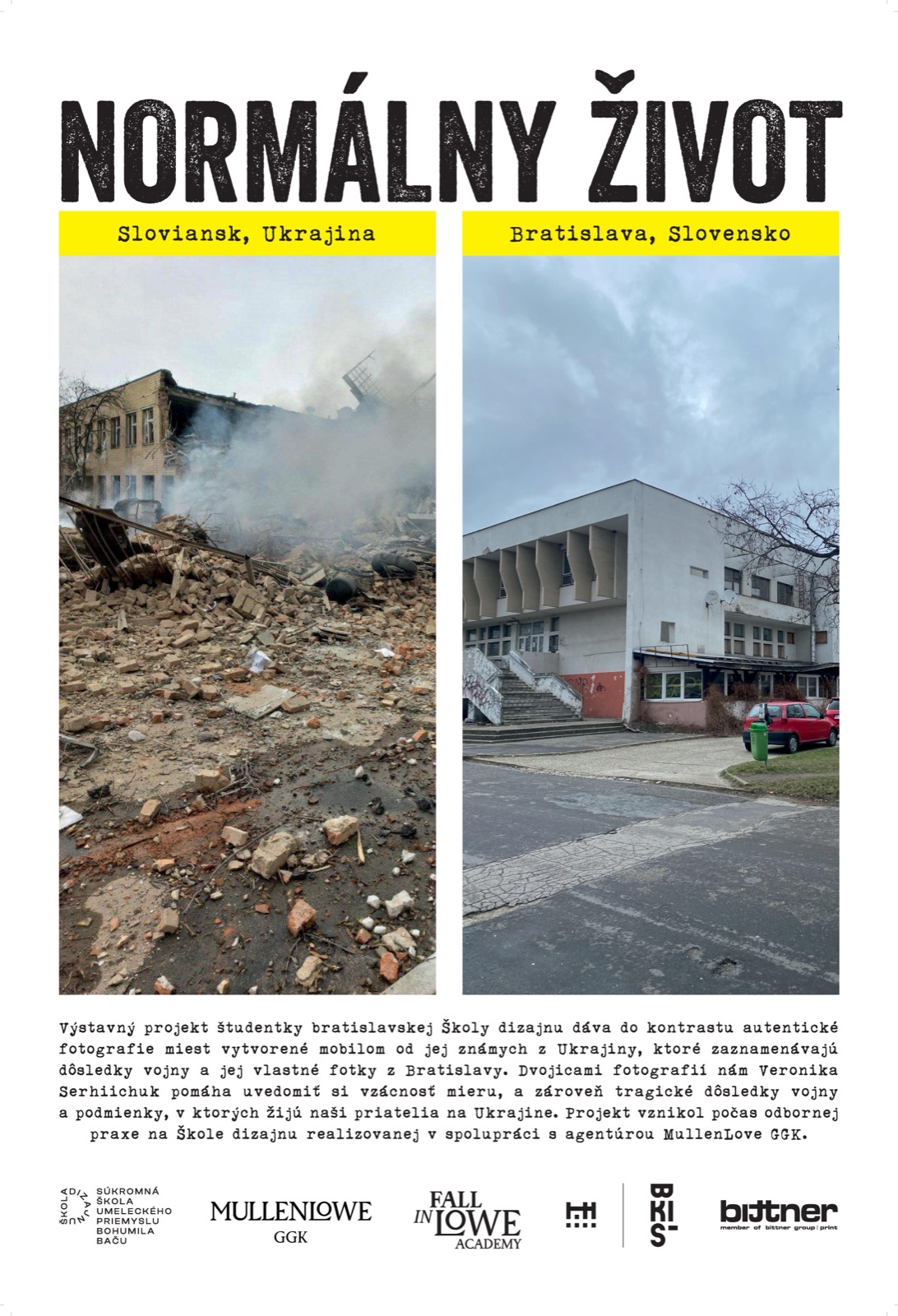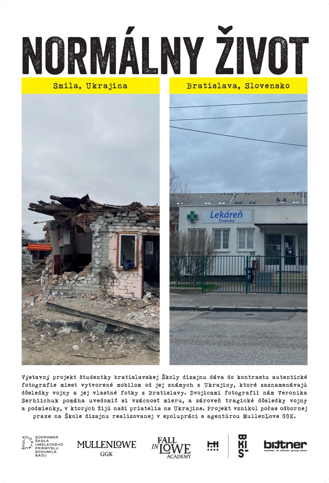Ďakujeme tlačiarni Bittner print za sponzorskú podporu výstavy našej študentky Veroniky Serhiichuk - Normálny život.