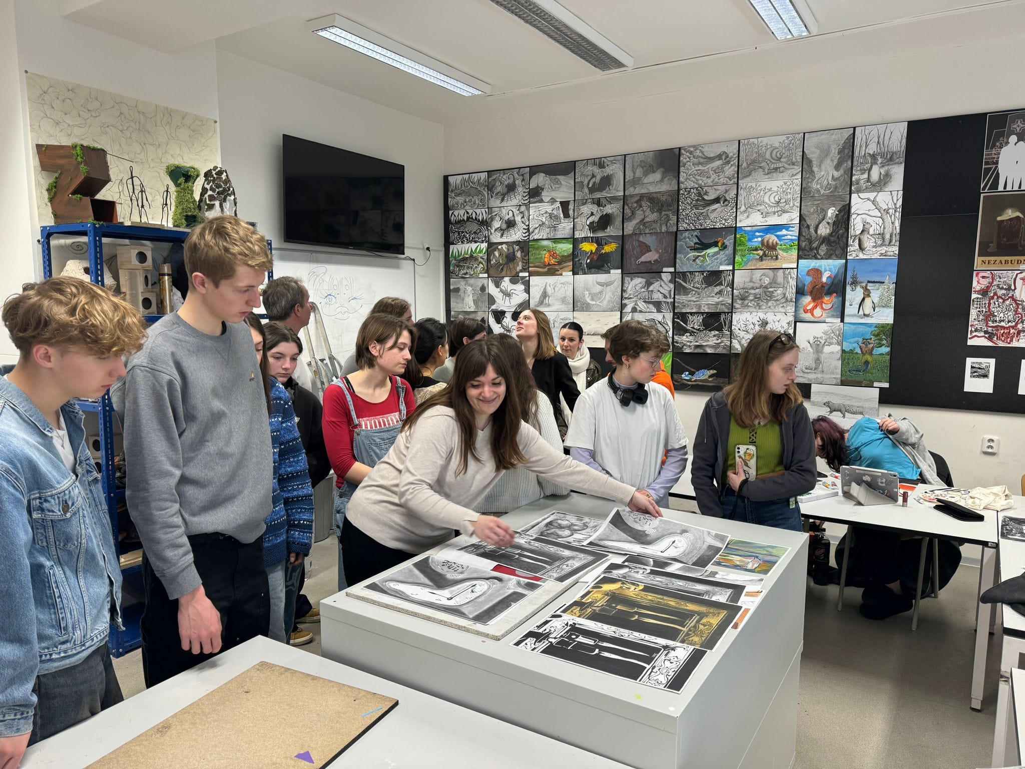 Koncom marca sme hostili v Škole dizajnu študentky a študentov francúzskej školy Lycée des métiers Charles de Gaulle z mesta Chaumont, ktorí u nás absolvovali študijný pobyt Erasmus+ v sprievode svojich pedagógov Oliviera Chantiera a Mariusa Monfilsa. S francúzskou školou spolupracujeme na umeleckých a vzdelávacích projektoch v rámci programu Erasmus+.