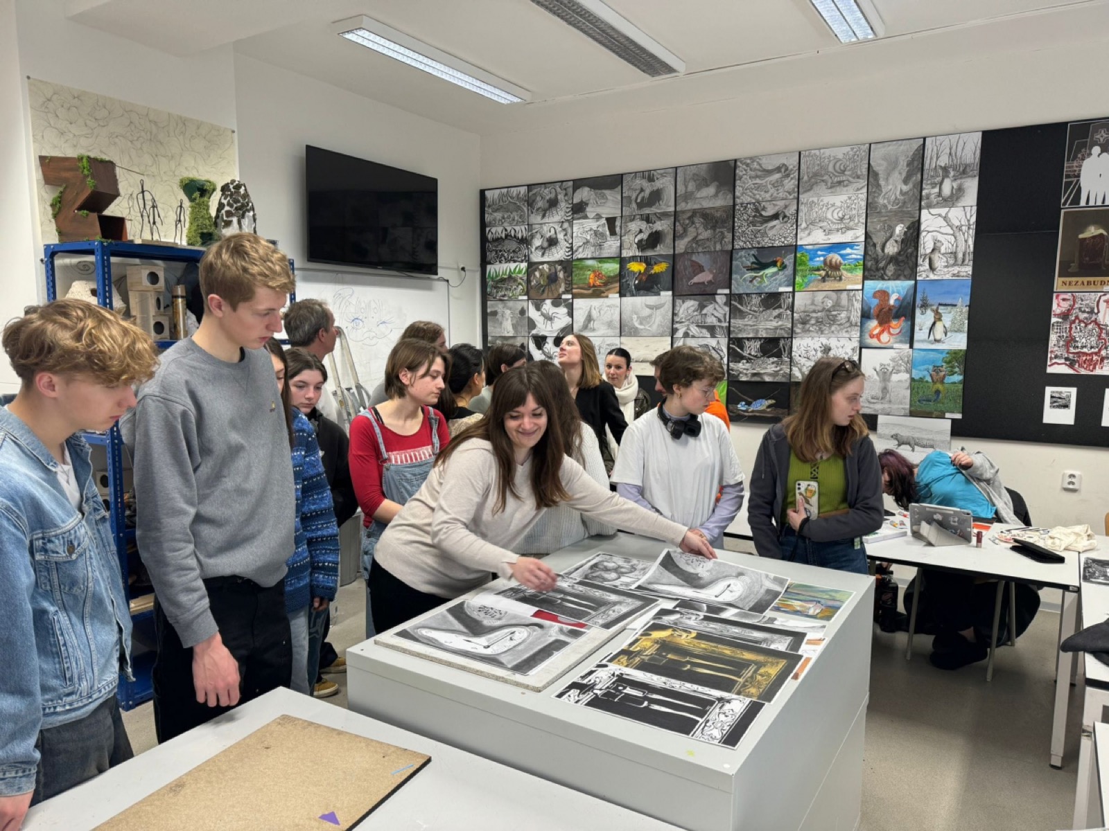 Z tejto medzinárodnej spolupráce sa veľmi tešíme a ďakujeme našim pedagogičkám Lucii Minárikovej, Lucii Balúchovej a Miriam Kulacsovej, ale aj našim študentkám, ktoré v Škole dizajnu sprevádzali našich francúzskych priateľov. Ďakujeme aj Ľudmile Miklušičákovej a Martinovi Schwarzovi, ktorí študentkám a študentom z Chaumont predstavili bratislavské galérie a previedli ich mestom.