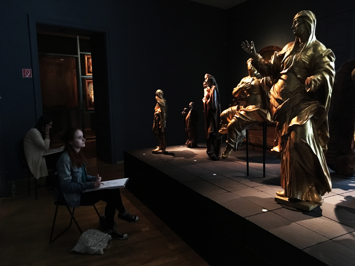 31. mája a 7. júna prebiehala výuka Figurálnej kresby v Esterházyho paláci SNG. Študenti 3. ročníka Grafického a priestorového dizajnu pod vedením Mgr. art Kataríny Galovič Gáspár mali príležitosť kresebne študovať dočasnú expozíciu historických zbierok známych diel z obdobia gotiky a baroka. Okrem efektnej úvodnej inštalácie Charakterových hláv F. X. Messerschmidta venovali svoju pozornosť aj dielam Dionýza Ignáca Stanettiho, Ľudovíta Godeho, Majstra Pavla z Levoče, Georga Raphaela Donnera a ďalším artefaktom prezentácie zbierkového fondu. Študentské kresebné výstupy budú vystavené v rámci obhajob a Dní otvorených dverí na Škole dizajnu.