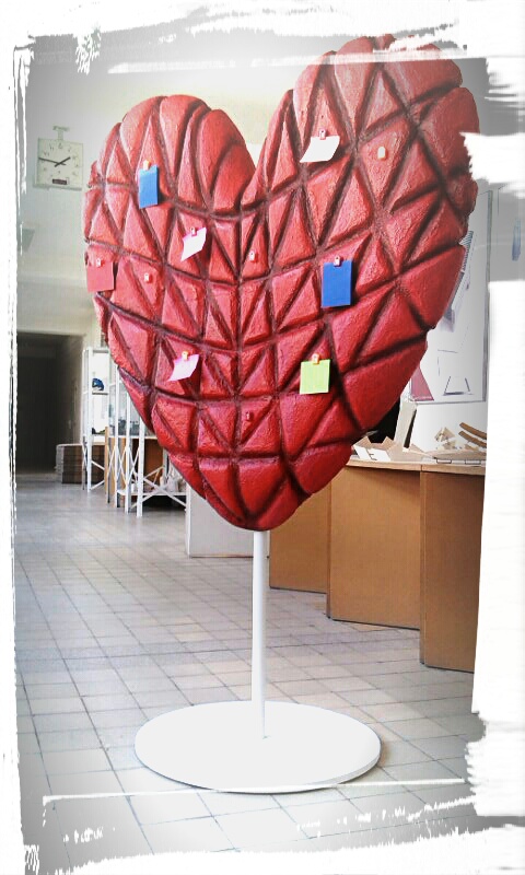 Vytvorili priestorový pútač v tvare srdca pre Nadáciu Detského kardiocentra ako “putovný pútač”, ktorý bude využívaný na vopred dohodnutých miestach a bude slúžiť na propagaciu a zvýšenie povedomia o nadácii, o možnostiach podpory, o práci, ktorú nadácia vykonáva, na fotografie a pod.. Zároveň si ho budeme brať na všetky akcie a podujatia, ktoré v priebehu roka zorganizujeme (najbližsie to bude dražba sportových predmetov v nákupnom centre Aupark v aprili, neskor ďakovný koncert nadacie v Redute v maji, v septembri kardiologicky kongres a dalsie…)