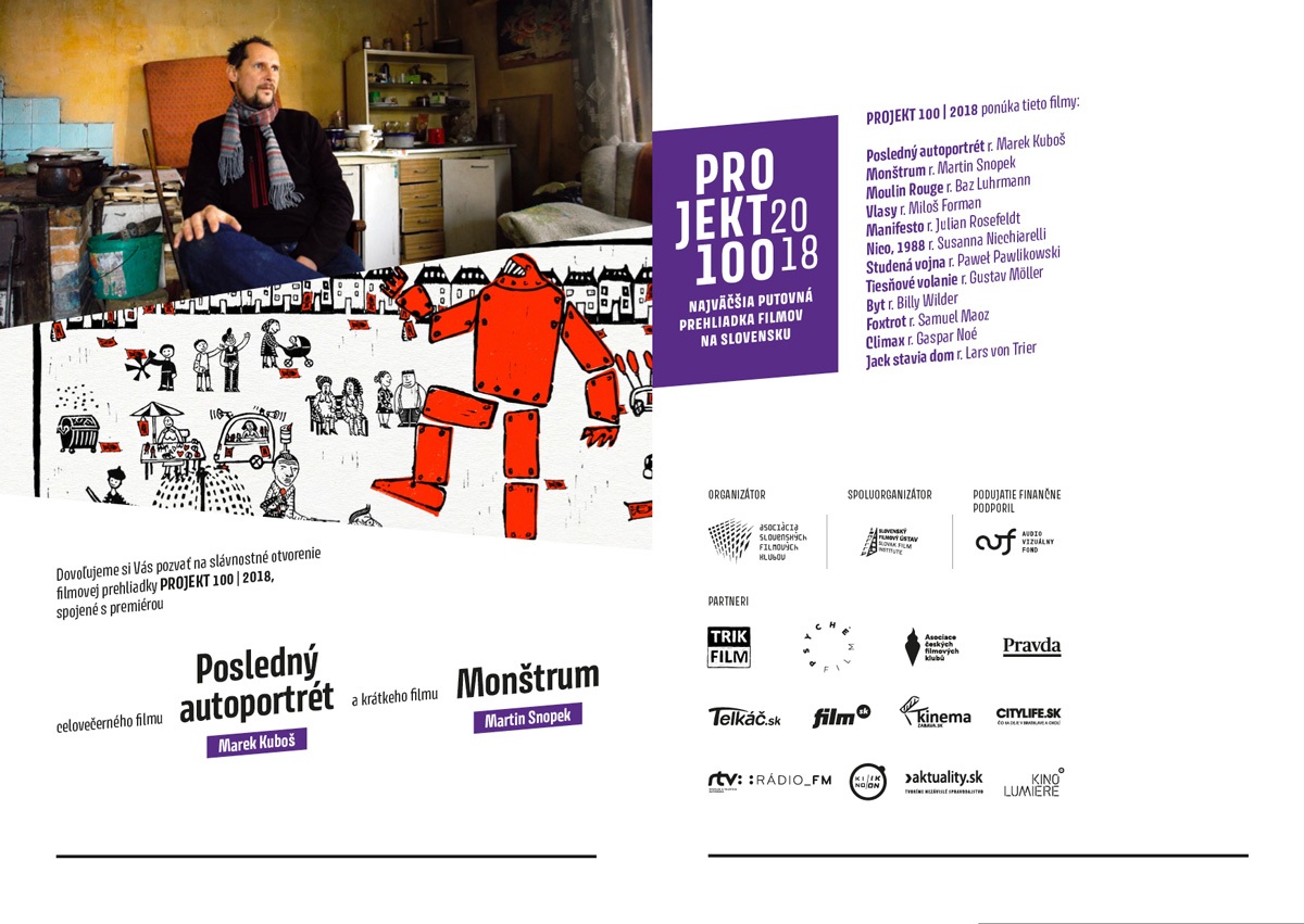 Filmový Projekt 100 otvorila premiéra krátkeho slovenského filmu Monštrum. Pod animovanú snímku, ktorá rozpráva o tom, ako obyčajní ľudia zavadzajú mocným v ich ceste za slávou a sú preto ochotní urobiť čokoľvek, aby ich odstránili, sa podpísal Martin Snopek. “Nebolo ľahké po Poslednom autobuse niečo vymyslieť, nadviazať na úspechy toho filmu. Chcel som spraviť film, ktorý by niečo povedal,” uviedol autor príbehu, ktorý rozpráva, ako moc politikom zaslepuje oči, sledujú už len svoj prospech a bežní ľudia sú im ľahostajní. Sedemminútový film vyrábal Snopek technikou linorytu dva roky a vytvoril pritom viac ako sto linorytových štočkov. Tento spôsob animácie je dôvod, prečo je k filmu vytvorená aj výstava. V priestoroch Kina Lumiére je prístupná do 15. októbra a návštevníci sa prostredníctvom nej dozvedia, ako takýto film vzniká.