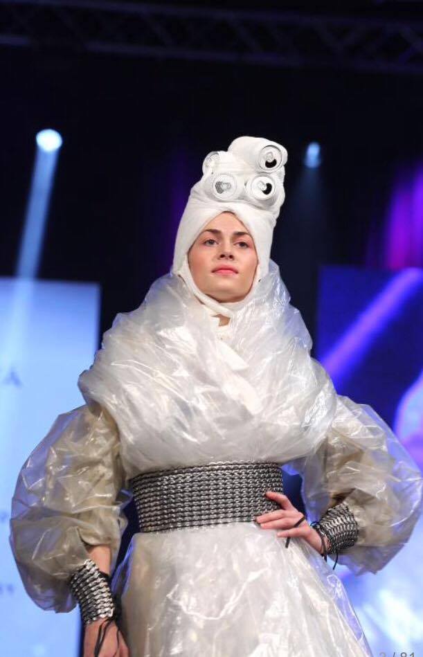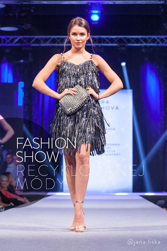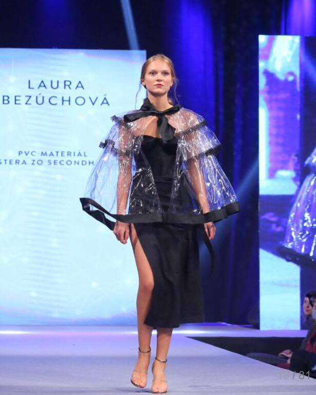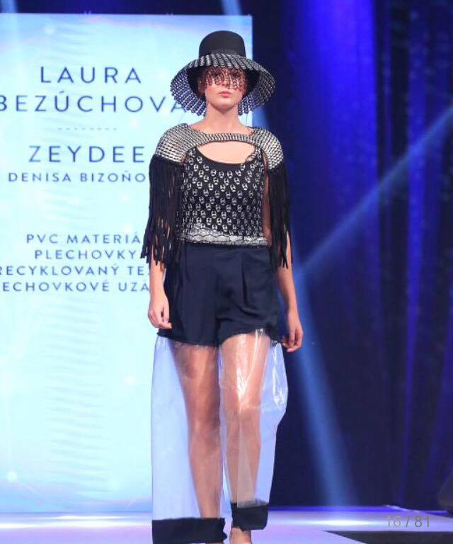 Študentka Školy dizajnu Laura Bezúchová na Fashion show recyklovanej módy