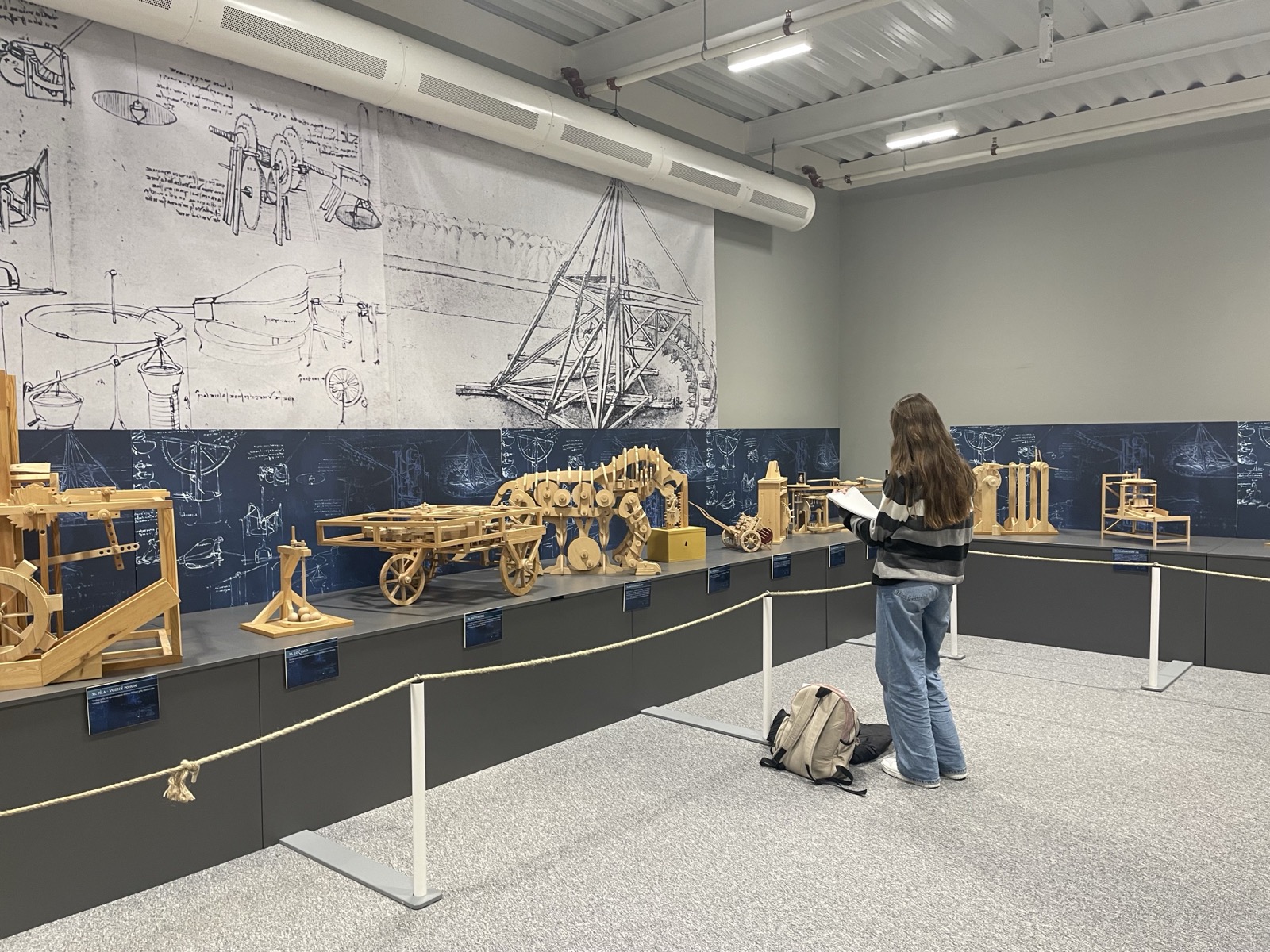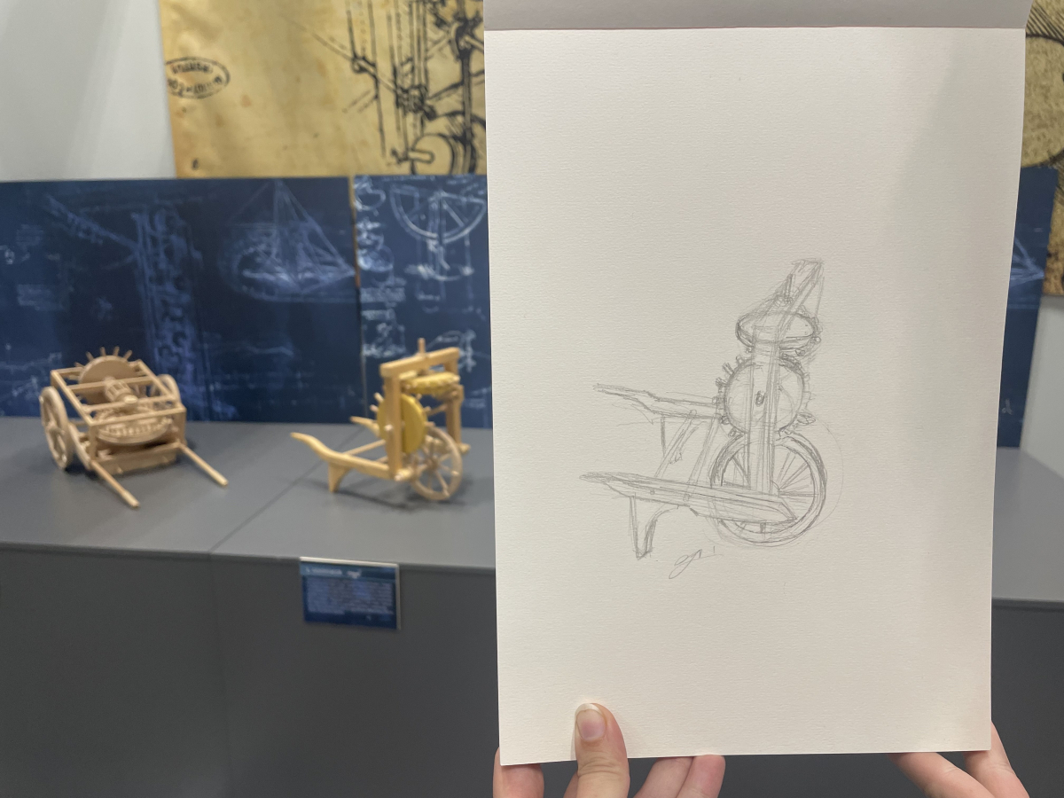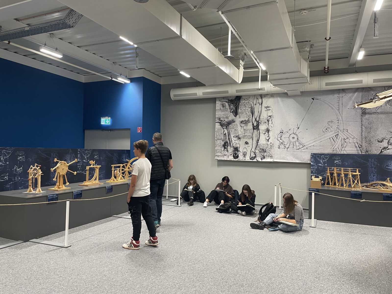 Na výstave si prezreli kolekciu plne funkčných exponátov, technických vynálezov a strojov navrhnutých renesančným géniom, skonštruovaných podľa originálnych Leonardových nákresov. V rámci exkurzie sme sa venovali študijnej kresbe vystavených exponátov s dôrazom na zaznamenanie geometrických tvarov v perspektíve.