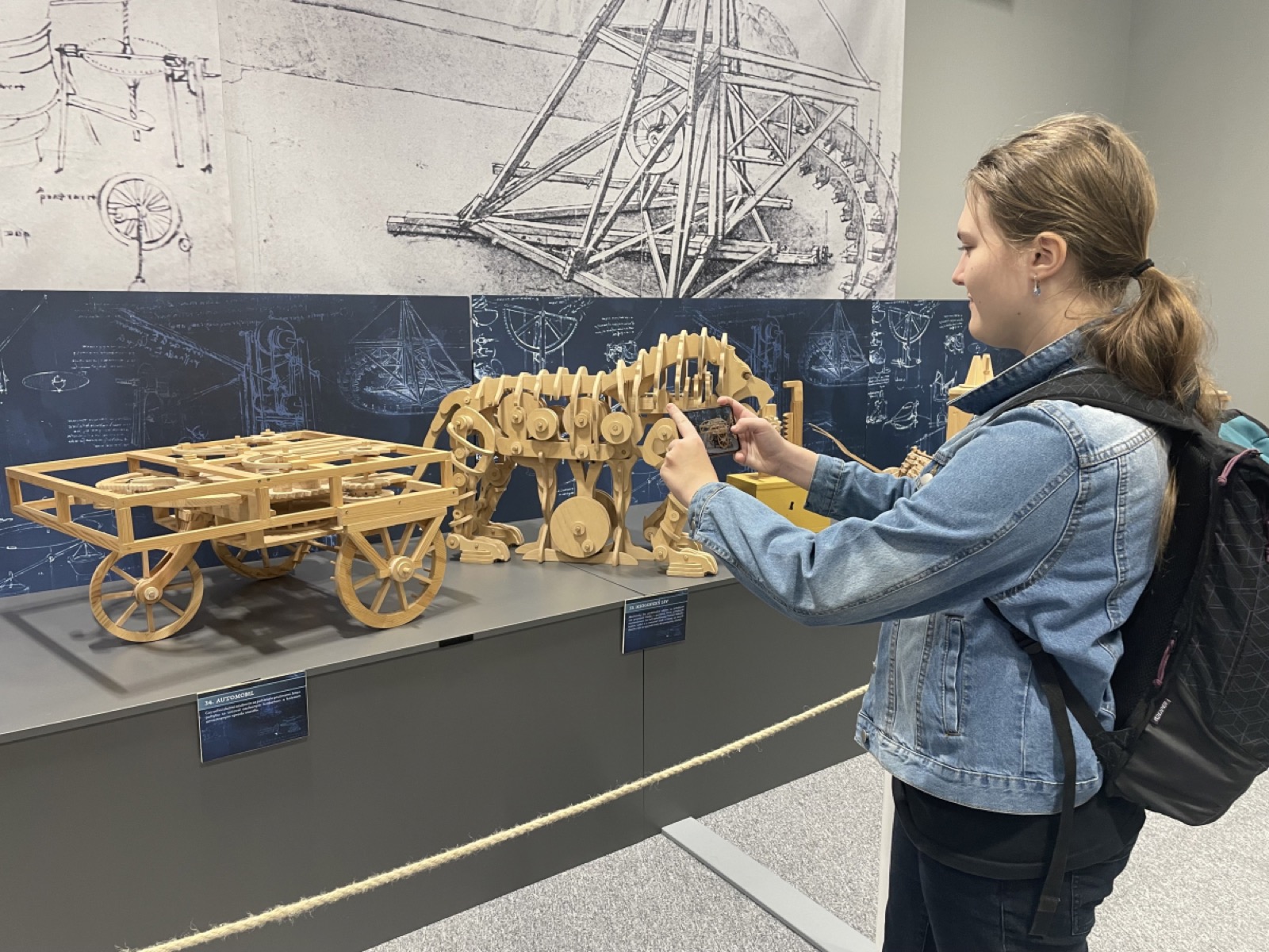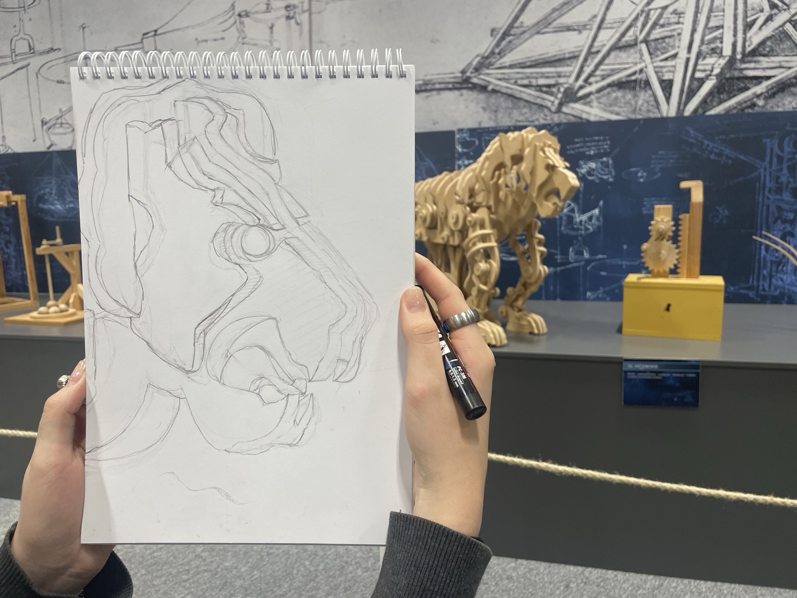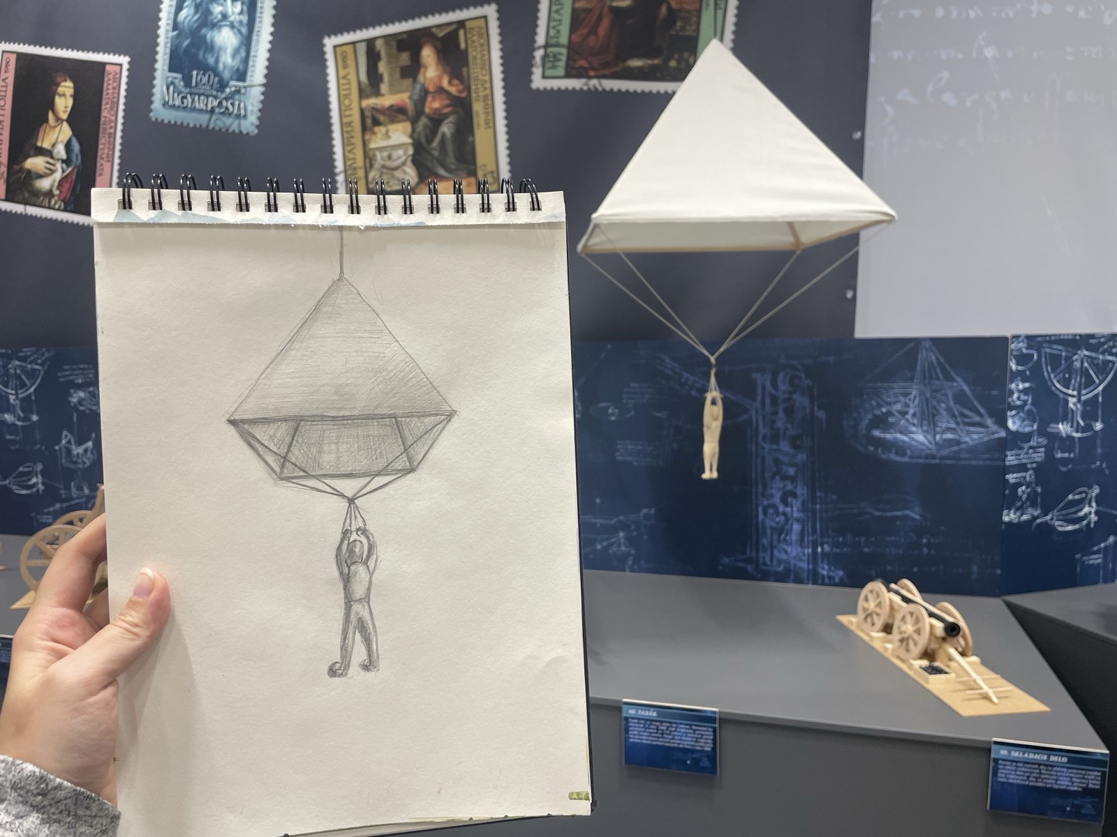 Na výstave si prezreli kolekciu plne funkčných exponátov, technických vynálezov a strojov navrhnutých renesančným géniom, skonštruovaných podľa originálnych Leonardových nákresov. V rámci exkurzie sme sa venovali študijnej kresbe vystavených exponátov s dôrazom na zaznamenanie geometrických tvarov v perspektíve.