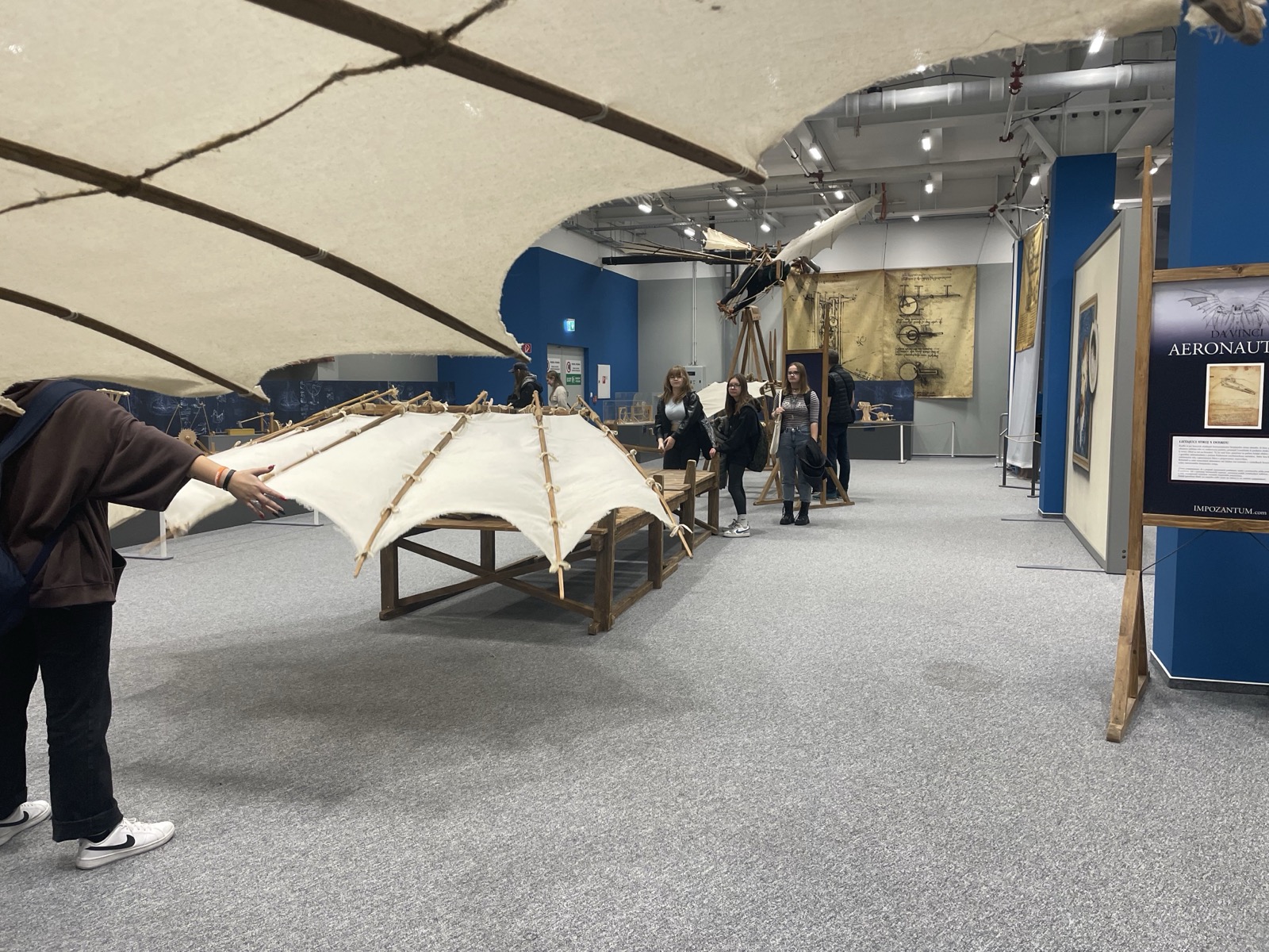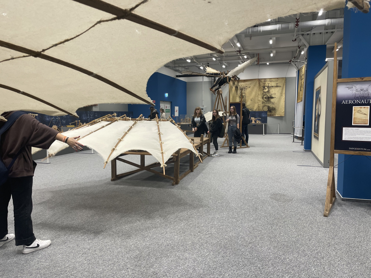 Minulý mesiac sa naše študentky a študenti grafického & grafického a priestorového dizajnu v sprievode pedagogičiek Zuzany Šebelovej, Alžbety Malovcovej, Ľudmily Miklušičákovej a Miriam Kulacsovej zúčastnili na exkurzii - výstave modelov navrhnutých Leonardom da Vinci, ktorá je sprístupnená v priestoroch Avion Shopping Park.