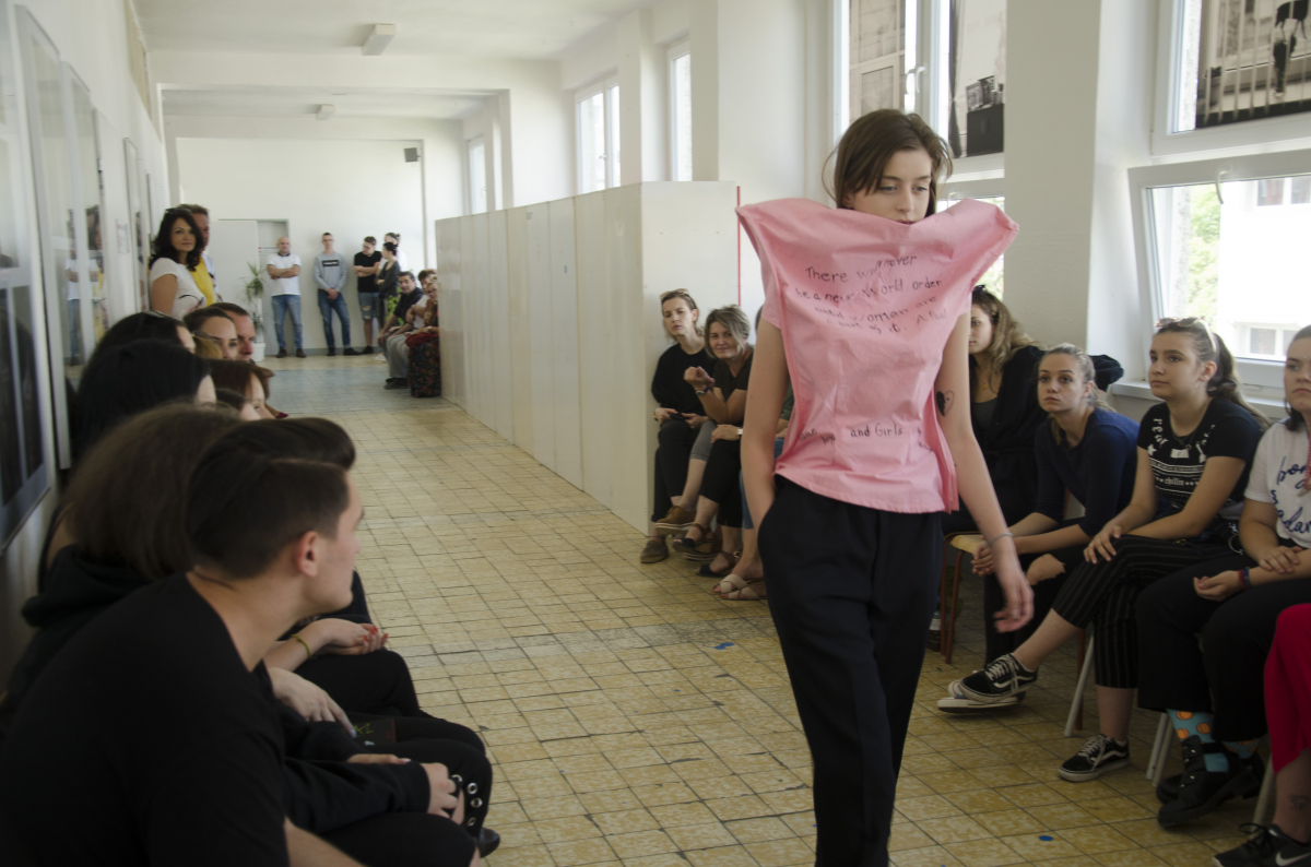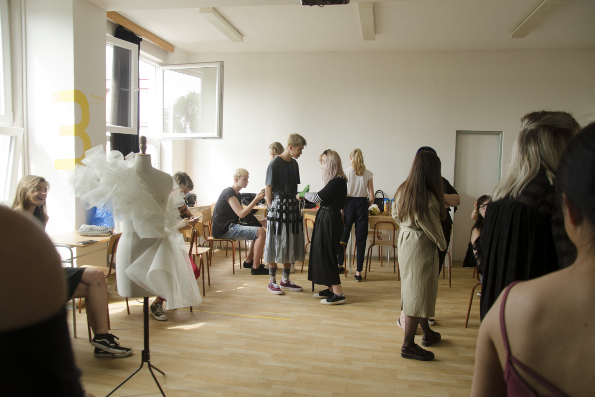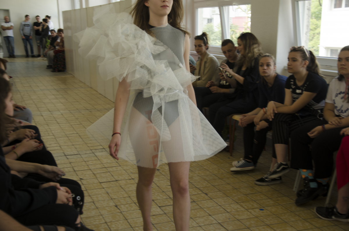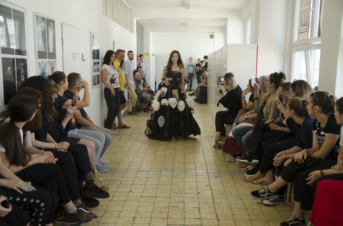 Módna prehliadka študentov a študentiek odborov odevný dizajn & odevný a textilný dizajn.