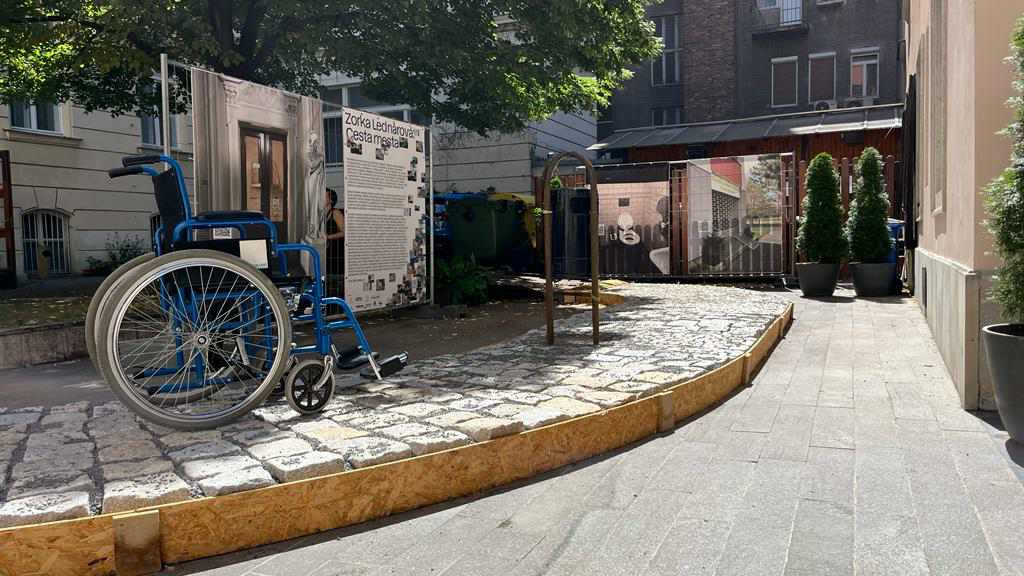Autorka Zorka Lednárová spoločne so študentkami a študentmi absolvovala workshop v uliciach Bratislavy, kde hľadali príklady bariér vo verejnom priestore, pre ktoré následne hľadali kreatívne riešenia debarierizácie. Nájdené situácie je taktiež možné vidieť priamo na nádvorí v podobe veľkoformátových tlačí, výsledné návrhy zlepšení sú prístupné po nascanovaní QR kódu.
